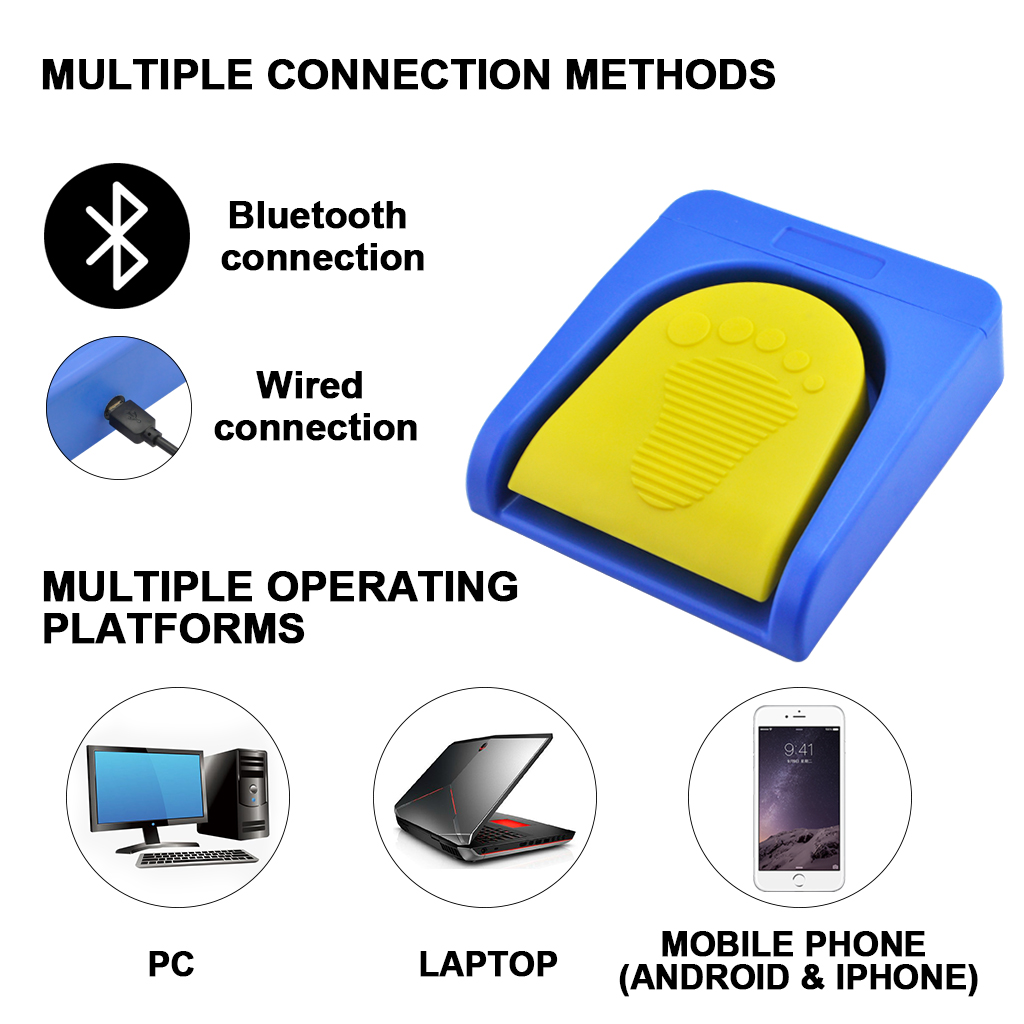 ✔Wireless Bluetooth Single USB Foot Pedal Switch allows hands-free operate on iPad, androids tablet and computers.